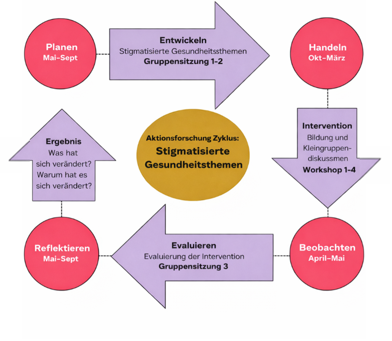 Zur Evaluation wurden standardisierte Fragebögen vor und nach der Intervention eingesetzt, ergänzt durch qualitative Gruppendiskussionen. Quantitative Daten wurden statistisch analysiert, qualitative Daten thematisch ausgewertet.