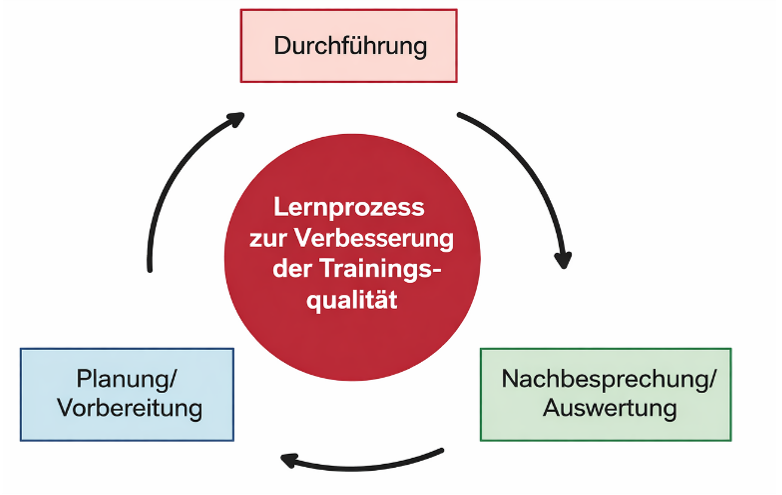 Die Entwicklung von Trainingsqualität erfolgt durch einen kontinuierlichen, zyklischen Lernprozess, der sich in drei zentrale Phasen gliedert: